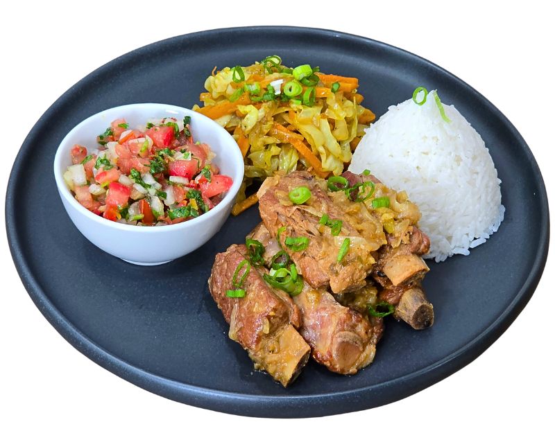 Plongez dans une expérience culinaire où la tradition rencontre l'élégance gastronomique. Nos côtes de porc à la Malgache, délicatement mijotées jusqu'à ce qu'elles se détachent tendrement de l'os, s'accompagnent d'un riz savoureux qui met en valeur chaque bouchée. L'assiette s'illumine également de deux salades emblématiques : l'Achard, aux légumes croquants finement relevés, et le Rougail qui apporte fraîcheur et parfum pour une note vive et équilibrée.